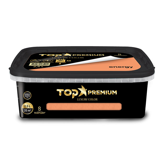 A TOP PREMIUM beltéri diszperziós falfesték egy kellemes és divatos színvilággal rendelkező kész színekre kevert festékcsalád, mely praktikus kiszerelésével segíti a könnyű felhasználást. Nagy kiadósság, jó fedőképesség, rugalmasság és dörzsállóság jellemzi. A bevonat hosszútávú és esztétikus védelmet biztosít.